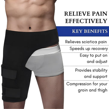 Do you ever feel hip pain that limits your daily life climbing stairs, walking, sitting? The Sciatica Relief hip brace is designed to change that. With gentle yet firm compression around your hip, thigh, and groin, this wrap stabilizes the area, reduces irritation of nerves, and helps relieve sciatica, groin strains, or overuse pain without surgery or lots of medication. Why it's so effective: Adjustable compression wrap lets you dial in the support exactly where you need it, whether on your left or right side. Breathable, high-quality neoprene material keeps things secure without trapping heat or causing discomfort. Lightweight design, made to wear under or over clothing, for daily use whether you're at work, home, exercising, or relaxing. Universal fit that works for men and women; fits a wide range of waist sizes. Benefits you’ll notice: Less sharp pain when standing or putting weight on your hip. Reduced stiffness and swelling after movement or rest. Improved stability and confidence: walking, bending, even going to sleep becomes more comfortable. Helps you use your body naturally again allowing you to stay active and enjoy life.