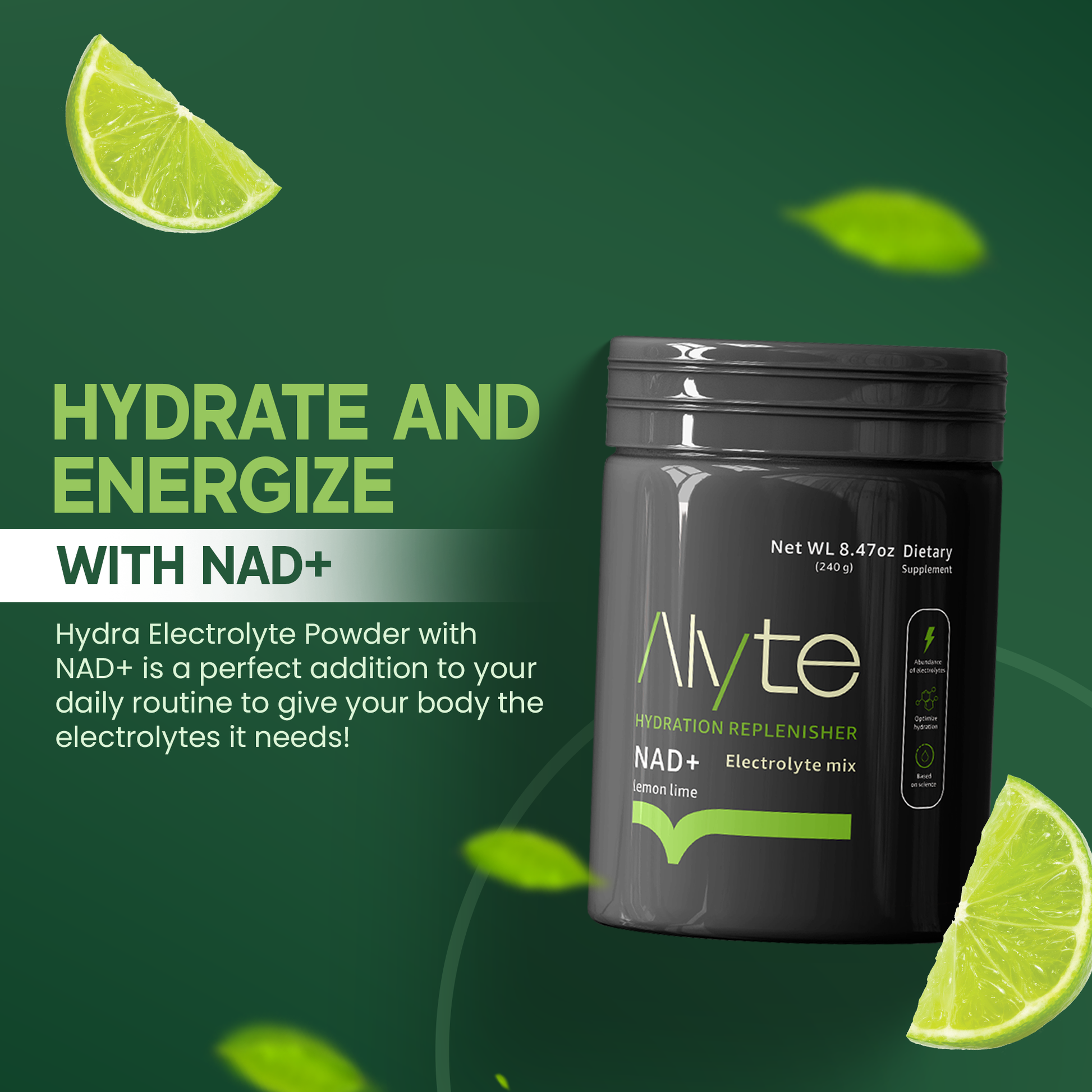 Alyte Electrolyte Powder with NAD+ – Hydration & Energy Boost, Low-Sugar Lemon Lime Drink for Muscle Recovery & Collagen Support