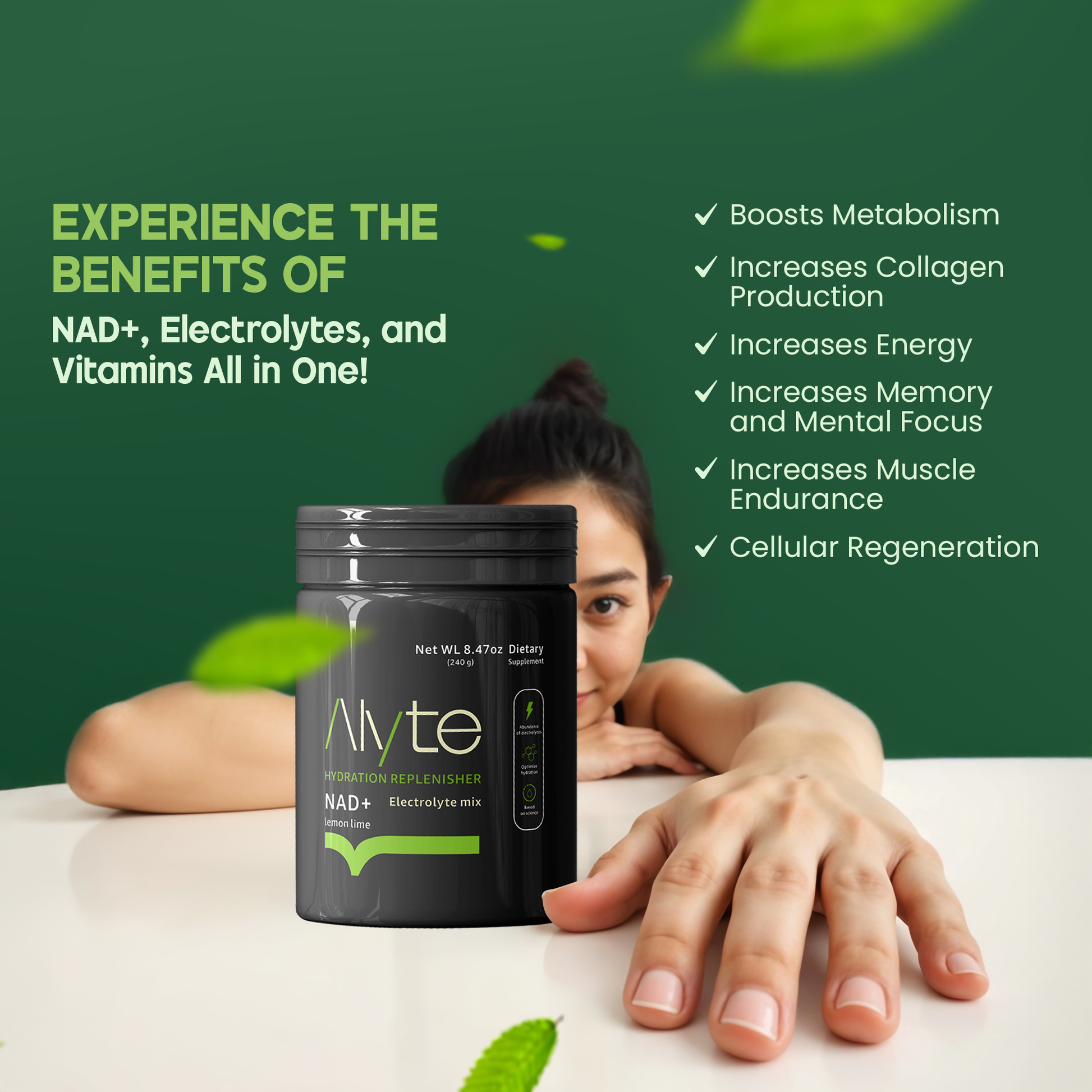Infused with NAD+, a powerful molecule known for supporting cellular energy and anti-aging benefits, Alyte Electrolyte Powder helps you recover faster and perform at your best. Whether you're training hard, managing stress, or simply seeking a natural boost, this electrolyte blend supports your body’s needs in the most efficient, tasty way.