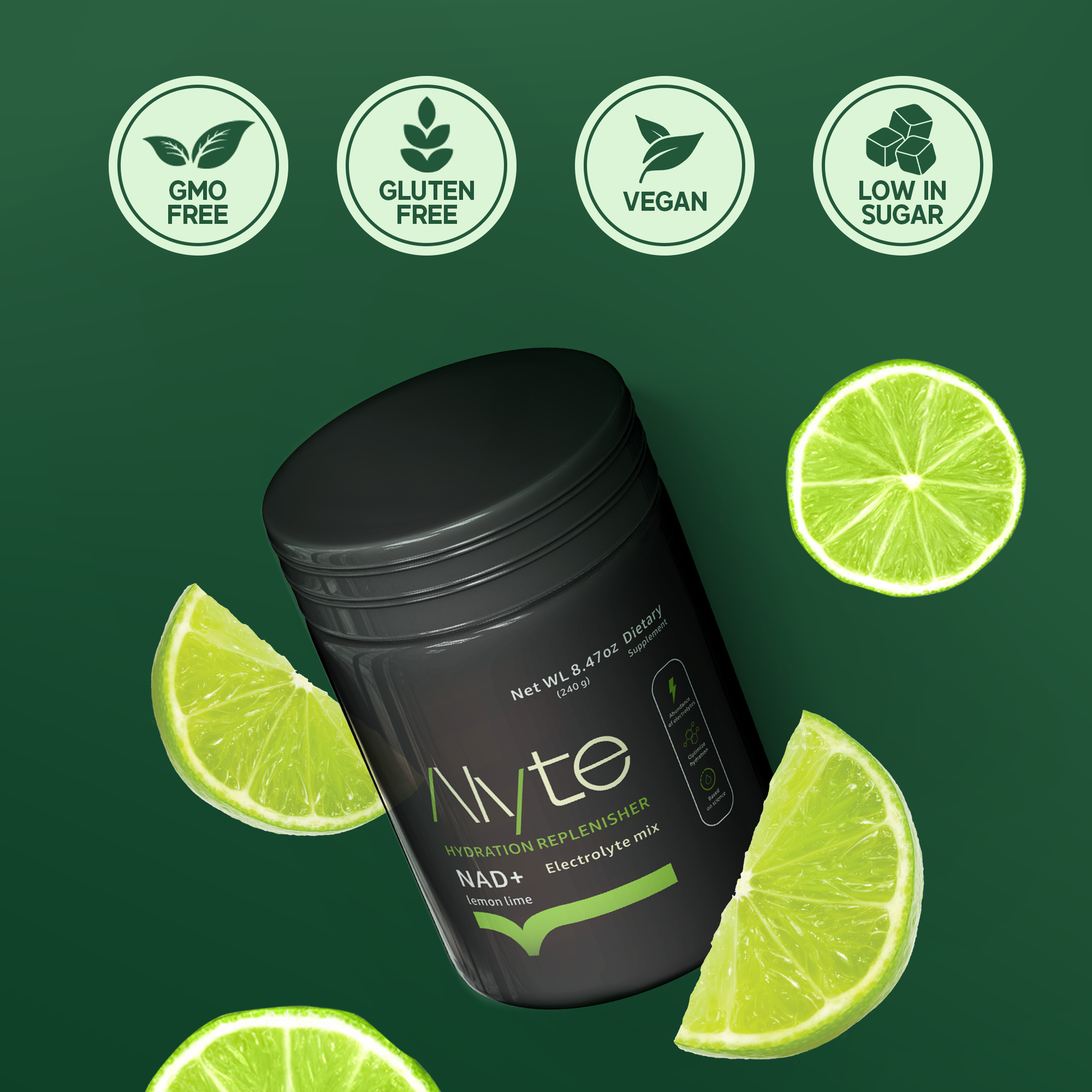 Alyte Electrolyte Powder with NAD+ is the ultimate hydration and recovery supplement, designed to replenish essential electrolytes, boost energy, and support muscle recovery while promoting collagen production for healthy, glowing skin. With a refreshing lemon-lime flavor, this low-sugar powder is the perfect drink for staying hydrated during workouts, outdoor activities, or throughout the day.